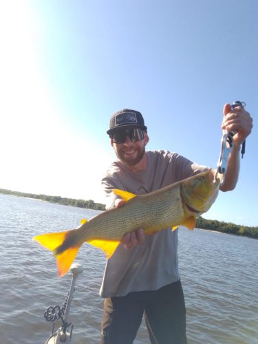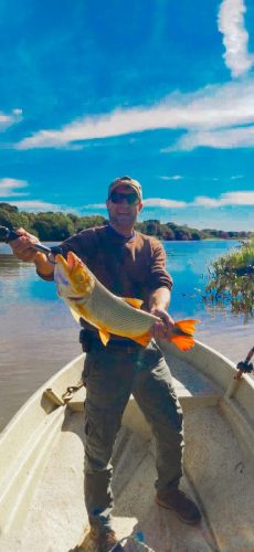 Disfruta la emoción de pescar al feroz Dorado, conocido como el “TIGRE DELRIO” , junto con la temible Tararira en nuestros lagos de riego y afluentes del río. Vive la experiencia de la pesca con mosca para ambas especies; realmente es una de las mejores aventuras que puedes tener al enfrentarte a estos peces agresivos en su hábitat natural. ¡Prepárate para un día inolvidable en el agua!